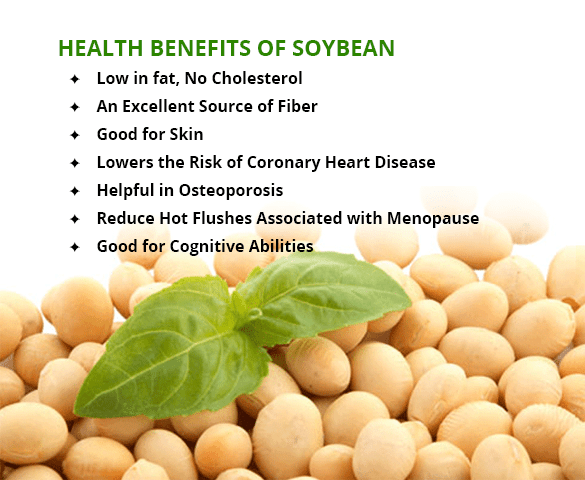 Soybean is a very good source of vegetable protein. It adds essential nutrients to your body, gives it strength and maintains good health. Soybean also plays a role in lowering cholesterol in the body and keeping the heart-healthy.